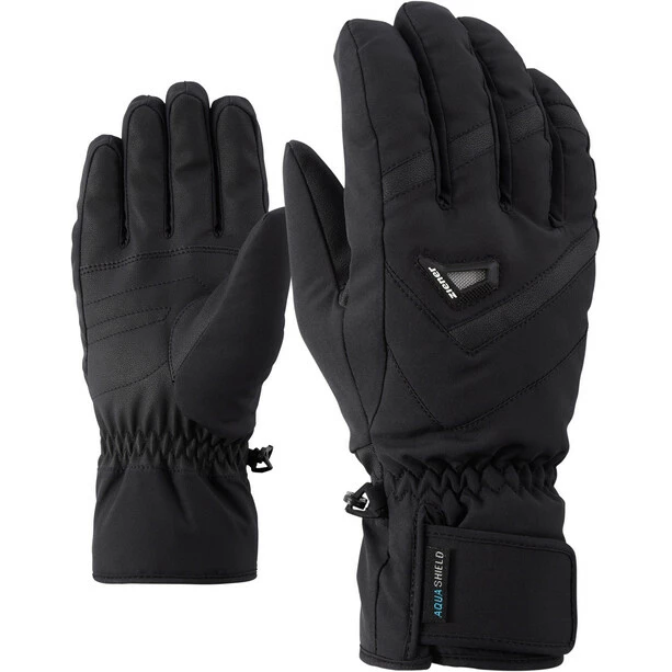 The comfortable ZIENER ski gloves GARY AS are equipped with a waterproof and windproof ZIENER AQUASHIELD membrane. This ensures a very warm and dry climate inside the gloves. The non-slip palms provide optimal power transfer to the ski poles. Ventilation logos on the backs of the hands provide pleasant climate comfort. The wide Velcro straps make it possible to wear the gloves under jacket sleeves.